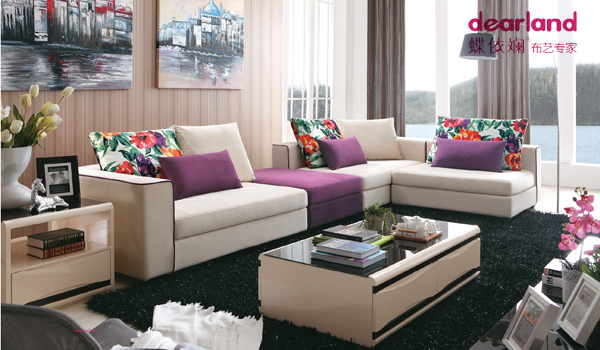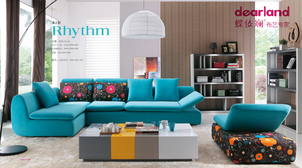 蝶依斓2014年家具展最新款布艺沙发用艳丽的色彩与多样化的搭配来突显产品张扬的个性,辅以实用的功能提升产品舒适性。
